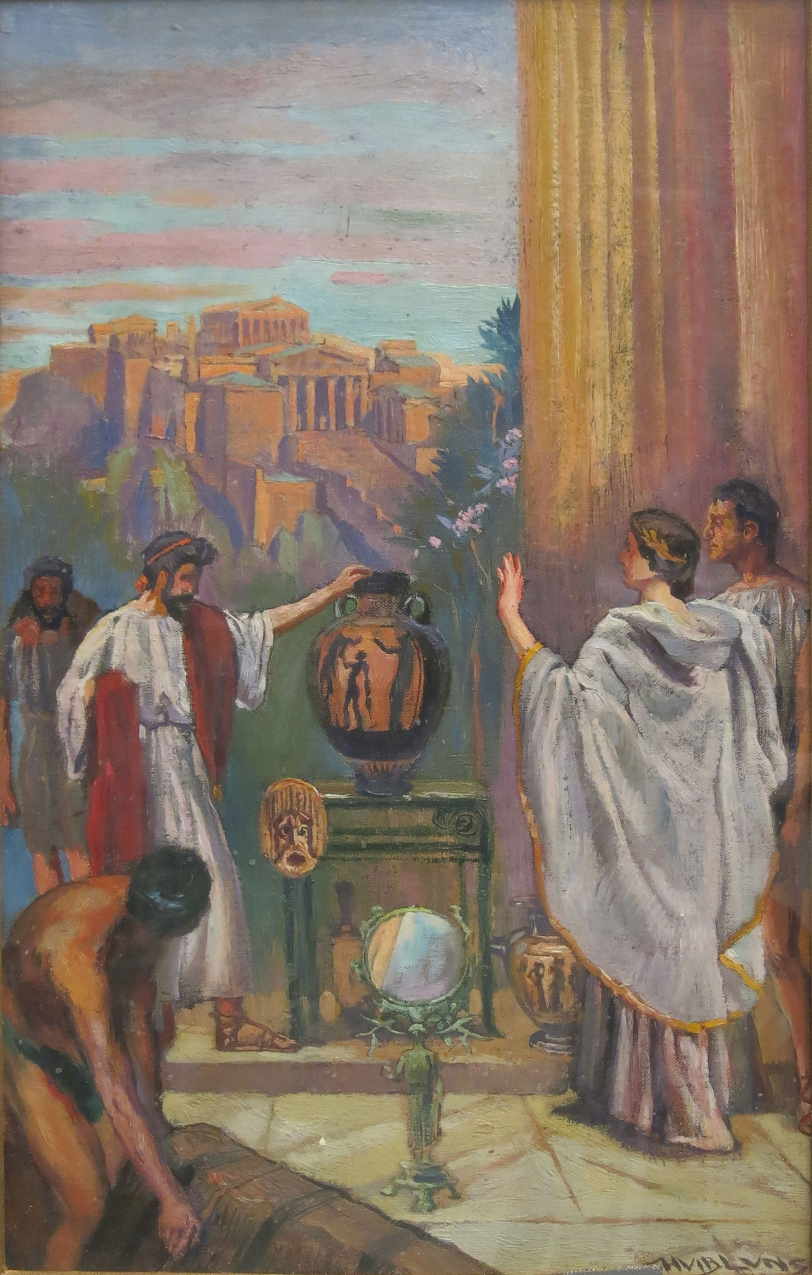 Omstreeks 500 voor Christus: De oude Grieken hadden een intensief handelsverkeer in de Middellandse Zee onderhouden en vooral hun stad Athene tot grote bloei gebracht. (ontwerp voor publicatie 'Uit de geschiedenis van de wereldhandel'), 1937