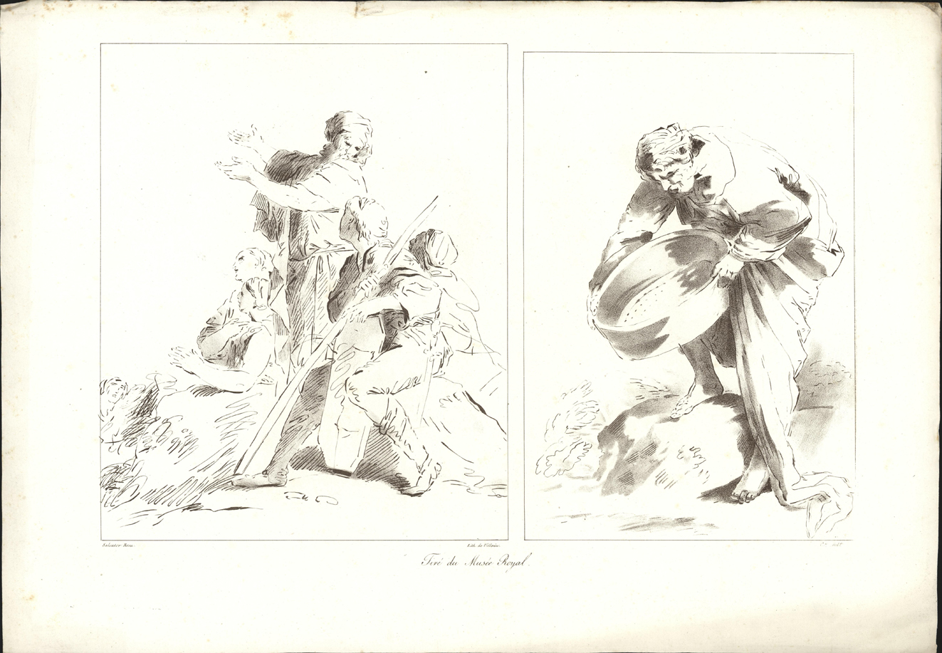 opschrift links onder in marge linker prent: Salvator Rosa