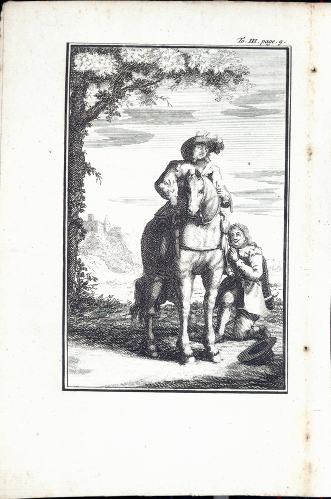 Geknielde man vraagt iets aan een ruiter te paard- Trefwoorden