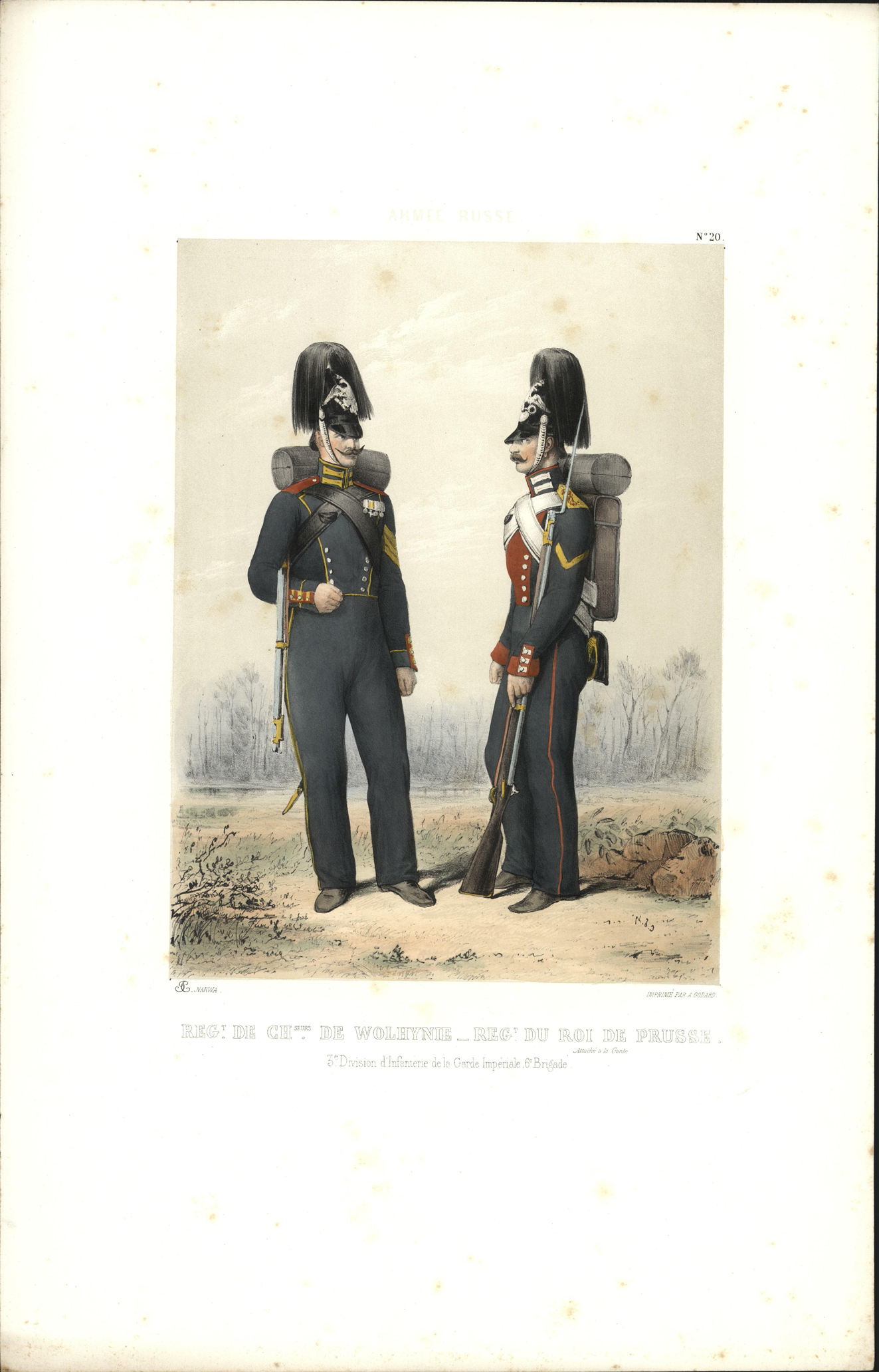titel midden onder de afbeelding: Régiment de Chasseurs de Wolhynie-Régiment du Roi de Prusse.