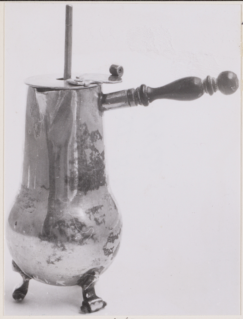 Chocolade kan met stamper staand op drie pootjes .- Trefwoorden