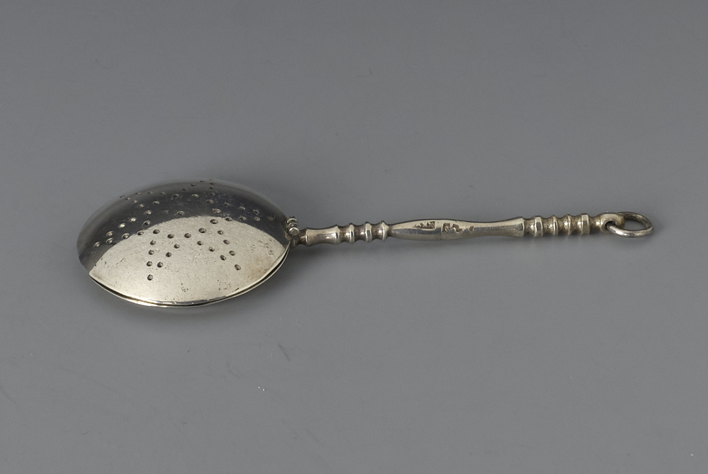 Beddenpan met lange, geprofileerde steel en ring aan het uiteinde.- Trefwoorden