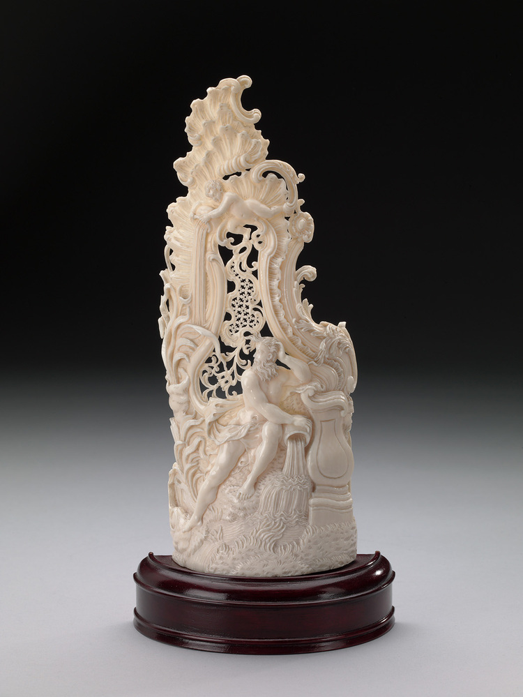 De verzameling van Abraham Willet telt een groot aantal voorwerpen van gesneden ivoor. Deze decoratieve reeks heeft als onderwerp de vier elementen: Water, Lucht, Aarde en Vuur. Links is de zeegod Neptunus weergegeven, hij symboliseert het water. Dan volgt Zeus, de heerser over het hemelrijk en daarmee de lucht. Derde in de rij is Ceres, die als godin van de vruchtbaarheid de aarde representeert. De Cyclopen, smeden van de godheid Hephaistos, symboliseren het vierde element: het vuur. ( Bert Vreeken)