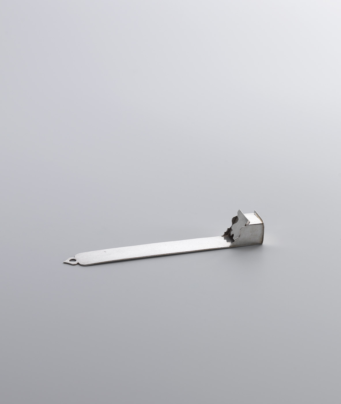 Geen keuken of bijkeuken of er hing vroeger een slijpplank. Met behulp van zand of een ander slijpmateriaal werden daar messen op geslepen. De plank was altijd langwerpig van vorm en vervaardigd van een harde houtsoort, veelal eiken. Aan de onderkant bevond zich een bakje met deksel waarin het fijne slijpzand werd bewaard. Dit zilveren exemplaar geeft het echte voorwerp tot in detail weer, inclusief bakje en ophangoog. ( Bert Vreeken)