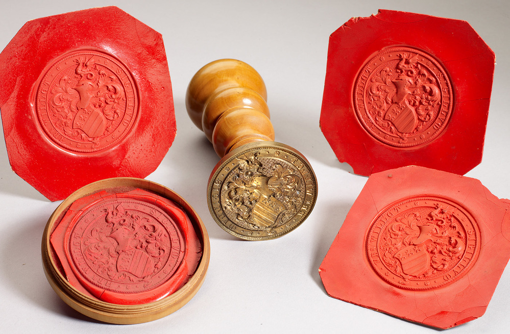 - Lakstempel wapen Abraham Willet, vier afdrukken en houder, 1880 - 1899