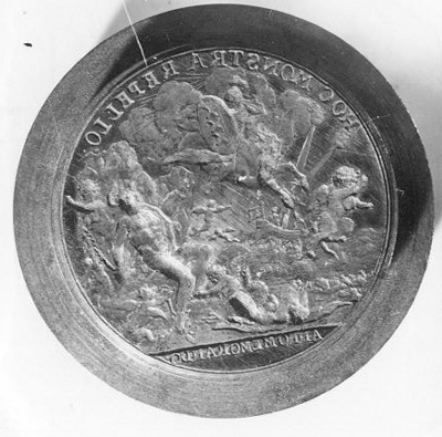 - Matrijs (2) voor historiepenning Tegen den Aktiehandel 1720, 1720