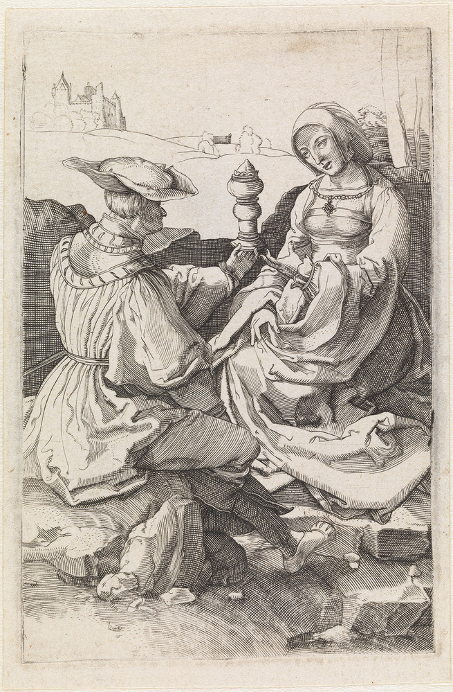 - Heer en dame, gezeten in een landschap, 1500 - 1600