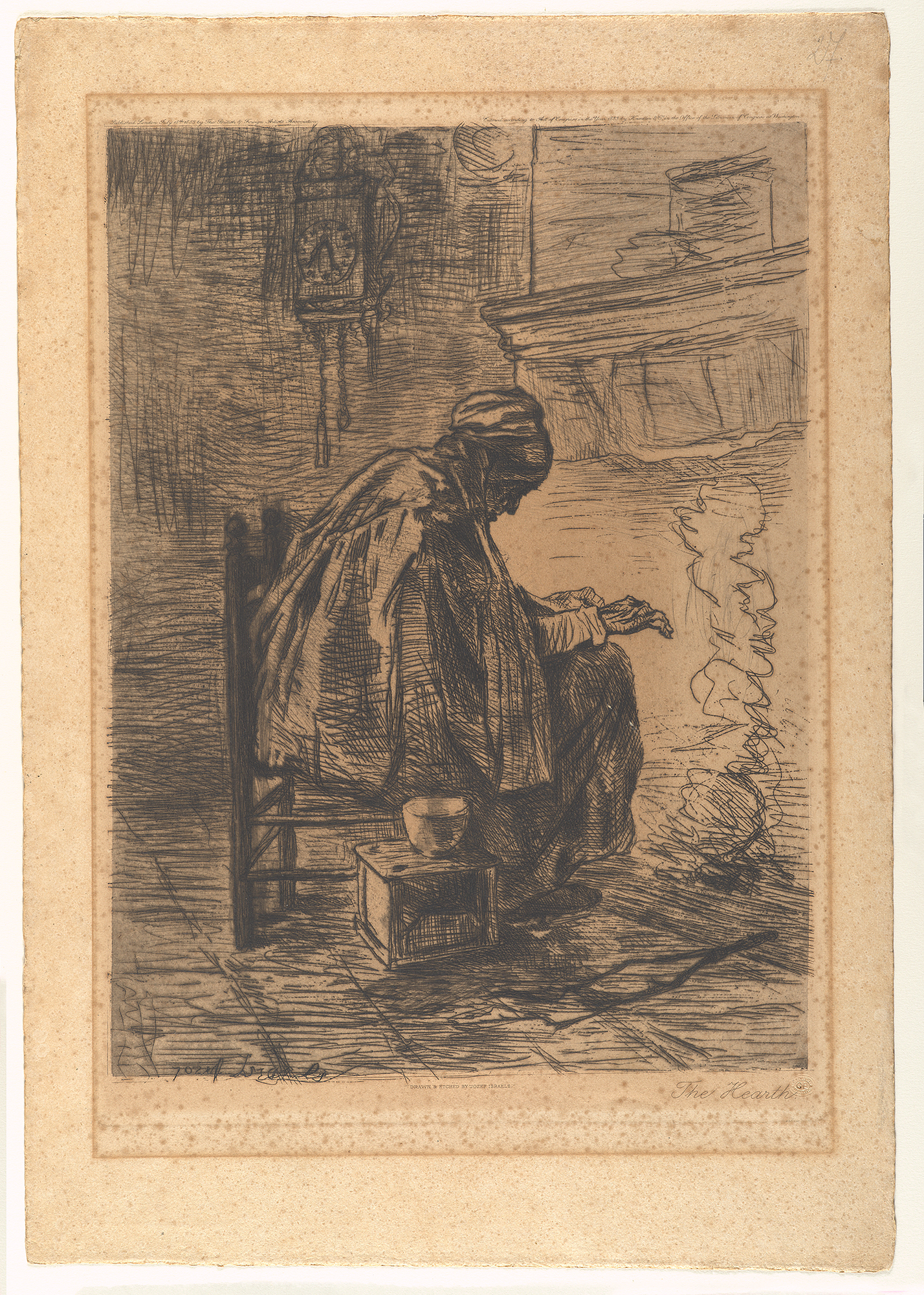 opschrift m.o. onder ets: Drawn and etched by Jozef Israels