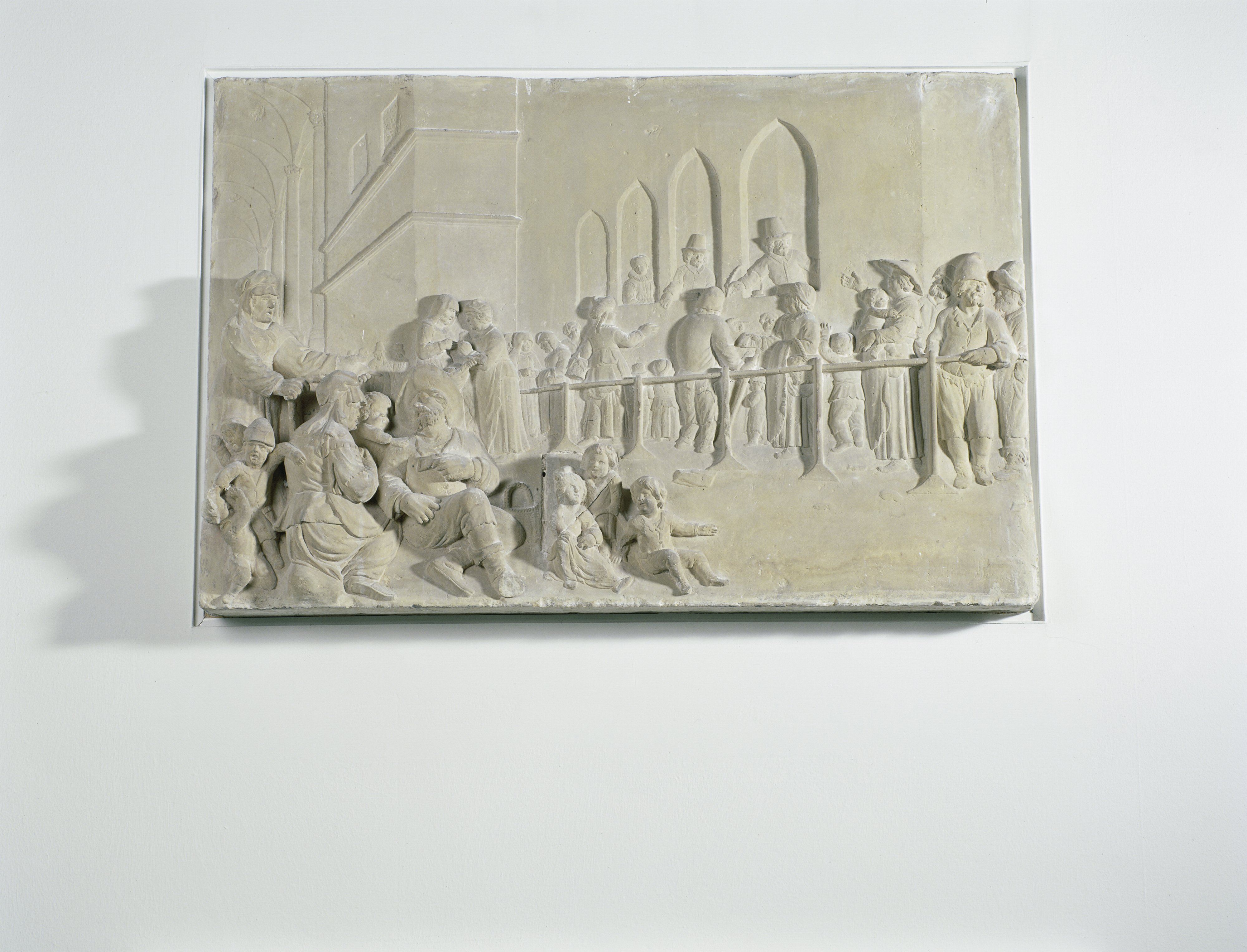 Uit de gevel van het zogenaamde 'tuinhuis', een laag gebouwtje naast het hoofdgebouw van het Nieuwezijds Huiszittenhuis, gebouwd in 1649. Dit reliëf bevond zich boven de rechterdeur. Het hoofdgebouw werd in 1873 afgebroken, het tuinhuis bleef gespaard. ( Onno Boers)
