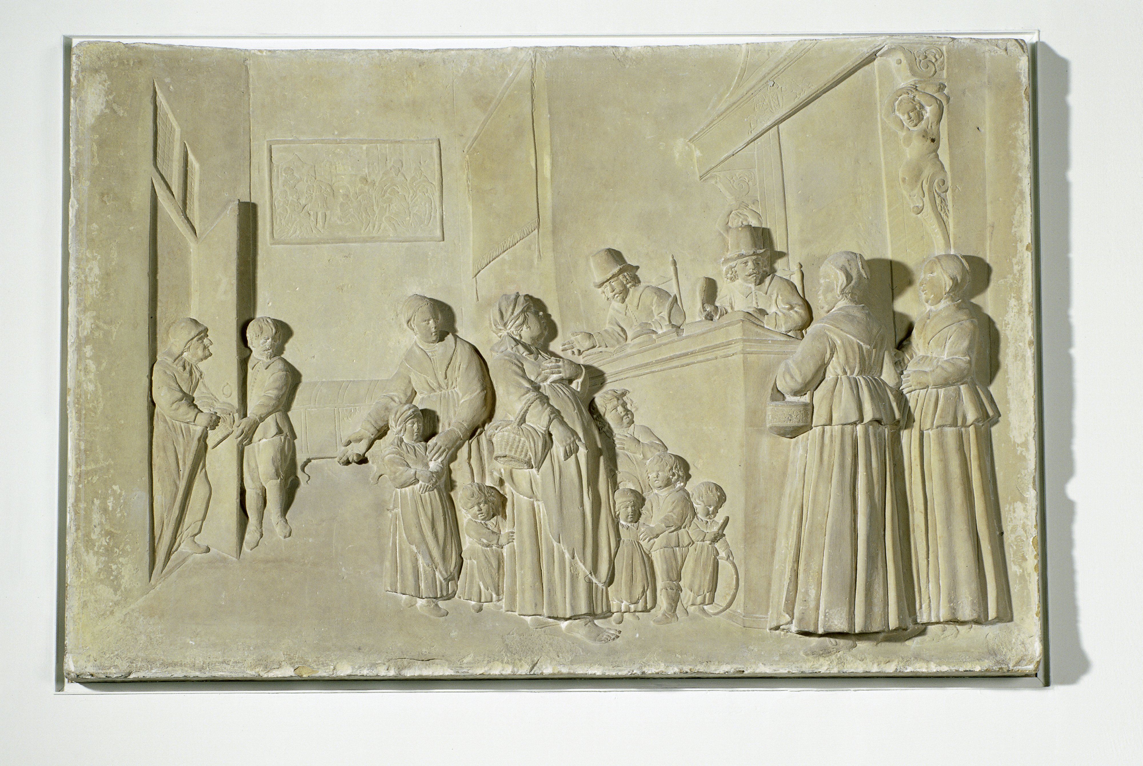 Uit de gevel van het zogenaamde 'tuinhuis', een laag gebouwtje naast het hoofdgebouw van het Nieuwezijds Huiszittenhuis, gebouwd in 1649. Dit reliëf bevond zich boven de linkerdeur van het tuinhuis. Het hoofdgebouw werd in 1873 afgebroken, het tuinhuis bleef gespaard. ( Onno Boers)