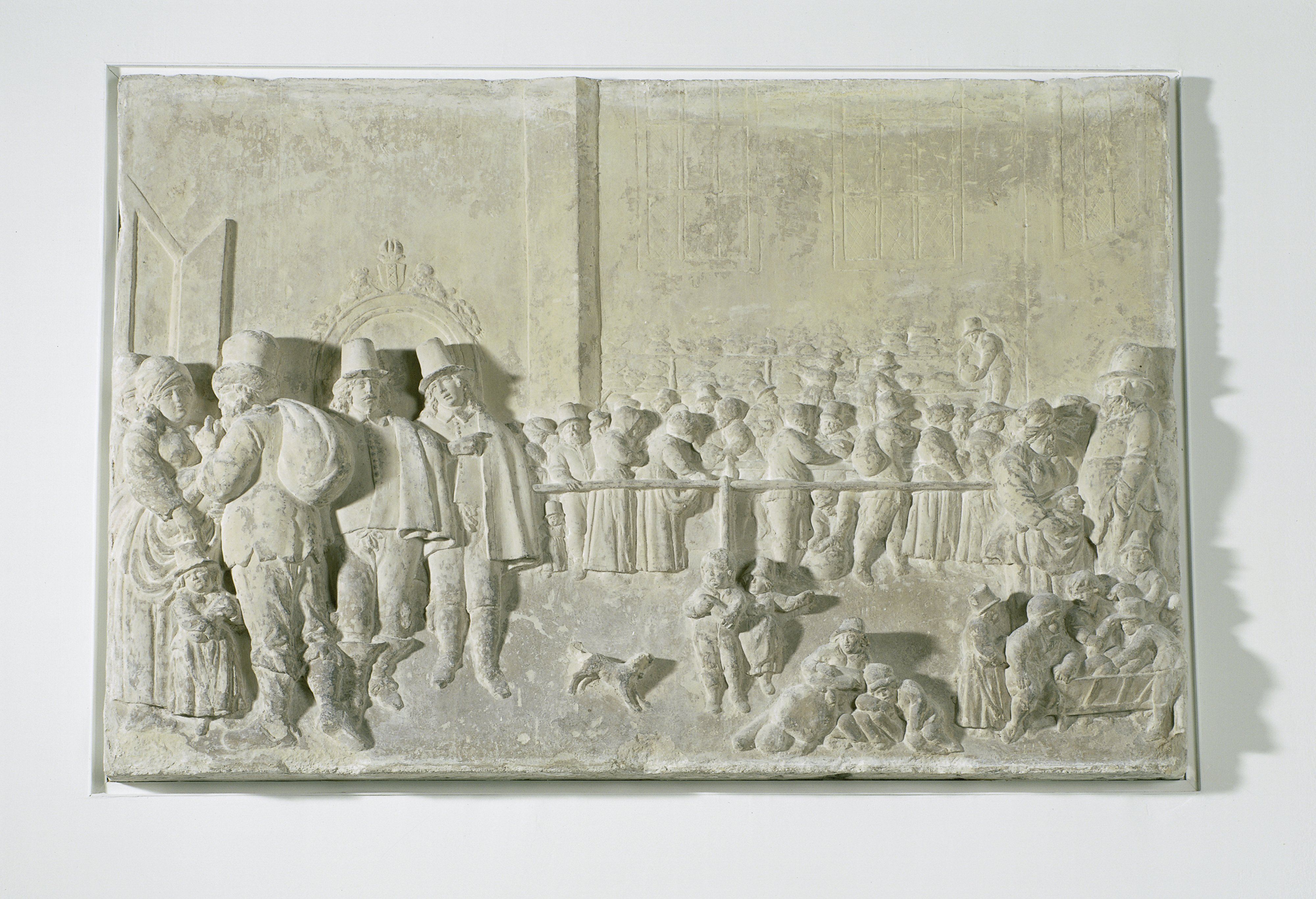 Uit de gevel van het zogenaamde 'tuinhuis', een laag gebouwtje naast het hoofdgebouw van het Nieuwezijds Huiszittenhuis, gebouwd in 1649. Dit reliëf bevond zich boven de gang naar de bakkerij. Het hoofdgebouw werd in 1873 afgebroken, het tuinhuis bleef gespaard. ( Onno Boers)