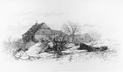 - Levensgevaar van de jongen A. de Graaf bij Doornwert (Prent nr. 4 uit de serie: De Waterramp van 1855) (naar J. Pelgrom), 1855
