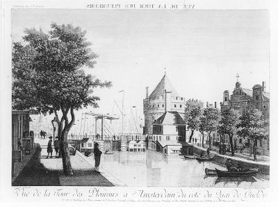 - "Vuë de la tour des pleureurs à amsterdam, du coté du quai de gueldre" (opticaprent), 1700 - 1799