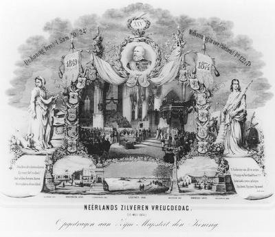 opschrift mid. o. gedrukt: neêrlands zilveren vreugdedag (12 mei 1874) opgedragen aan zijne majesteit den koning