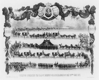 opschrift mid o. de prent gelithografeerd: plechtige begrafenis van h.m. de koningin der nederlanden op den 20sten juni 1877