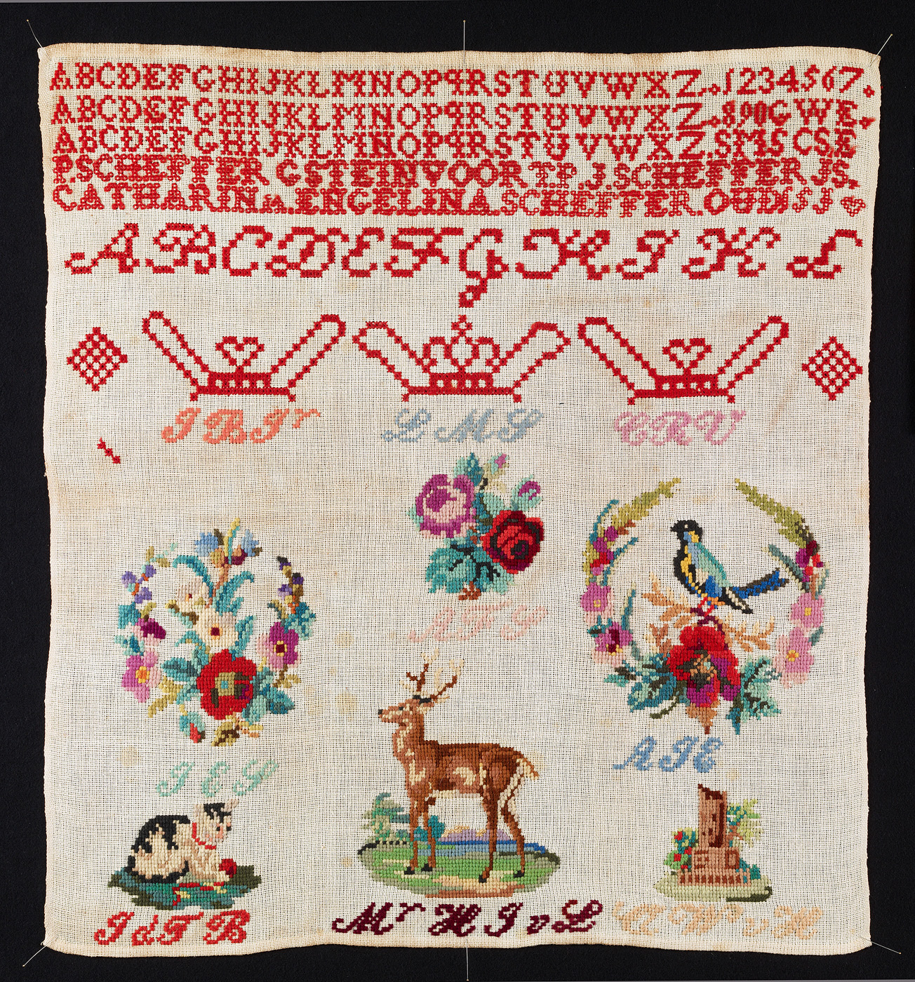 JS, vermoedelijk Johanna Scheffer, zus van borduurster