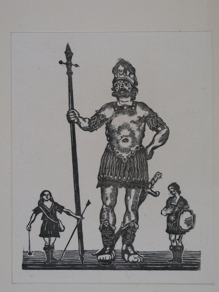 - Houtsnede van Goliath, David en een dienstknecht, 1933 - 1935