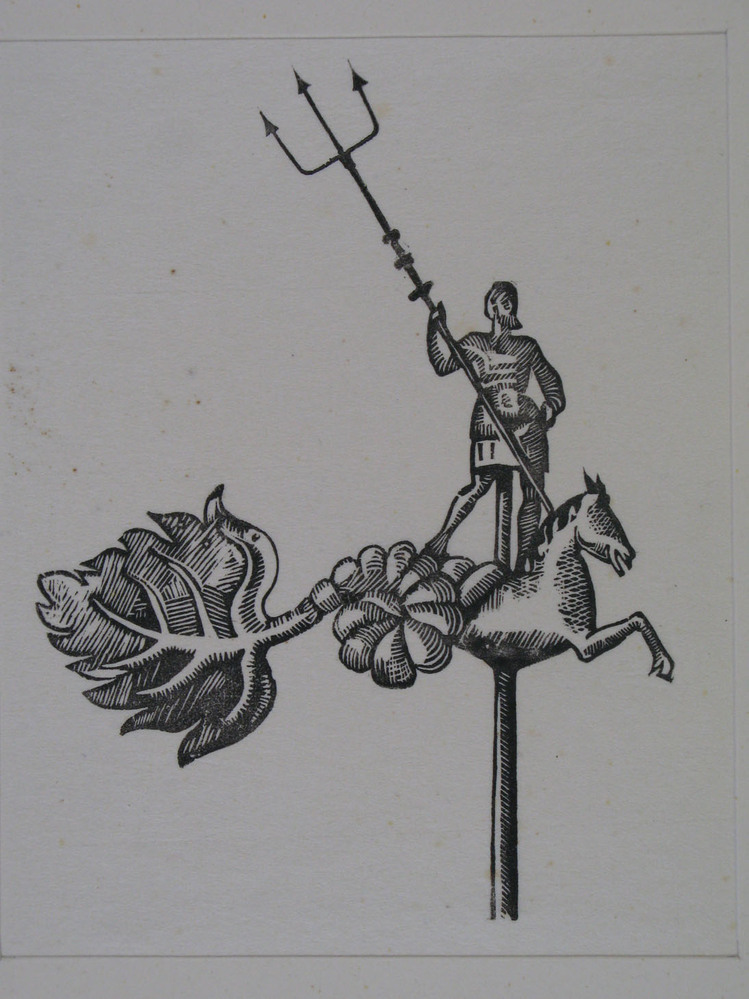 - Houtsnede van de windwijzer "Neptunus" afkomstig uit De Oude Waag op de Dam, 1935