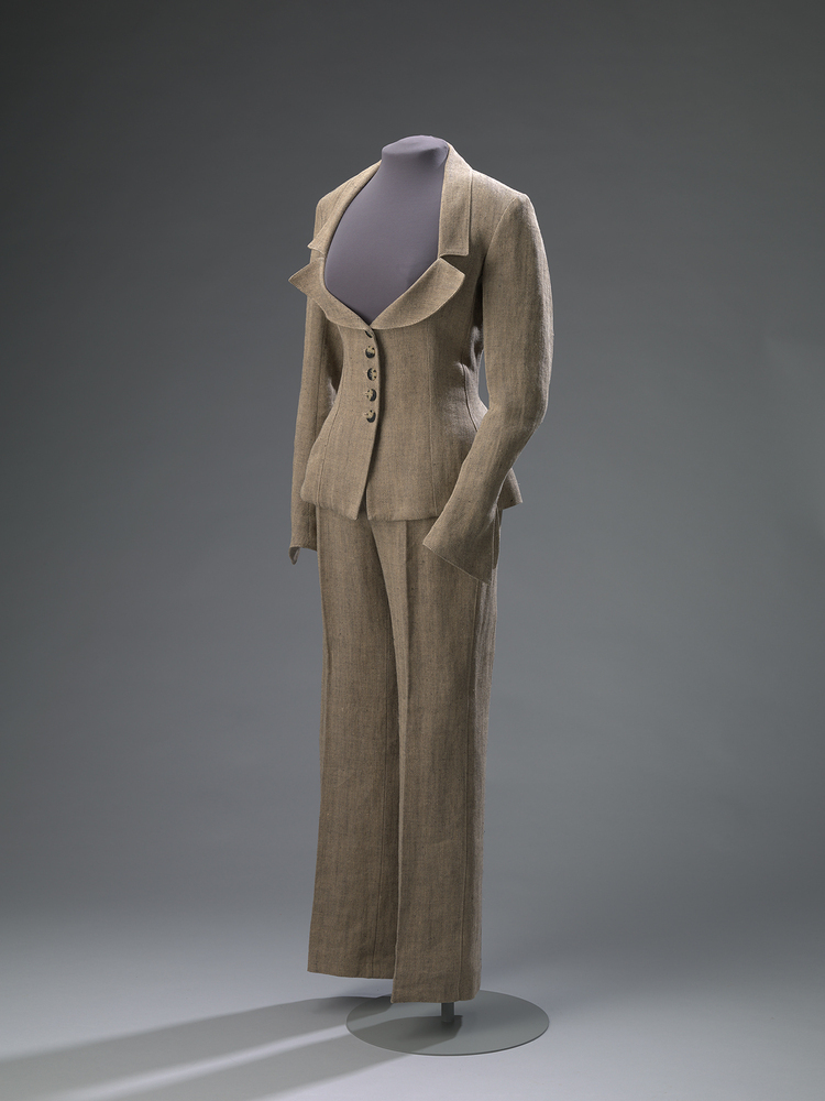 Dit colbert met de naam 'DEESE' is vervaardigd door het Amsterdamse modelabel Puck & Hans, opgericht door modeontwerpersechtpaar Puck Kroon (1941) en Hans Kemmink (1947). In 1967 openden Puck & Hans hun eerste winkel in Den Haag. Vanaf 1974 hadden ze ook een boetiek aan het Rokin te Amsterdam, met exclusieve en praktische kleding in moderne, eigenzinnige stoffen. De stijlvolle etalage aan het Rokin was voor voorbijgangers altijd een lust voor het oog. Begin 1998 is de winkel gesloten. Bij dit colbert hoort een pantalon, die zich eveneens in de collectie van het Amsterdam Museum bevindt (objectnummer KA 19917.2). ( Sarah Remmerts de Vries)