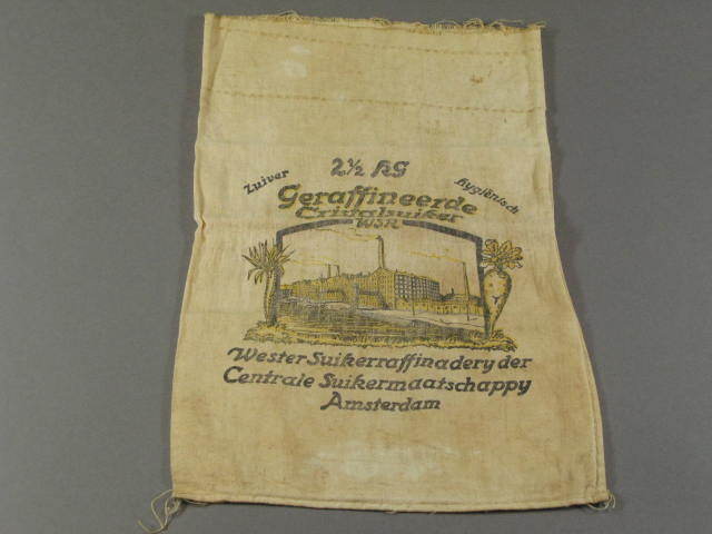 opschrift voorzijde: Wester Suikerraffinadery der/ N.V. Centrale Suikermaatschappy/ Amsterdam/zuiver 2½ kg hygiënisch/ Geraffineerde/ Cristalsuiker/ WSR: afbeelding van de fabriek met aan onder en bovenzijde tekst