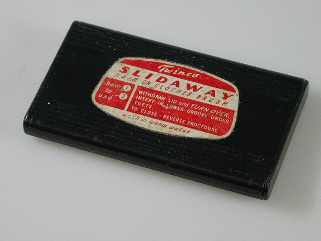 opdruk op sticker aan bovenzijde doosje: Twinco/ SLIDAWAY/ HAIR OR CLOTHES BRUSH
