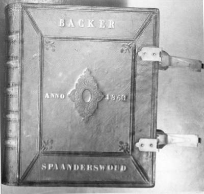 - opdruk voorkant band: boven: Backer ; midden: Anno [relief] 1851; onder: Spaanderswoud
