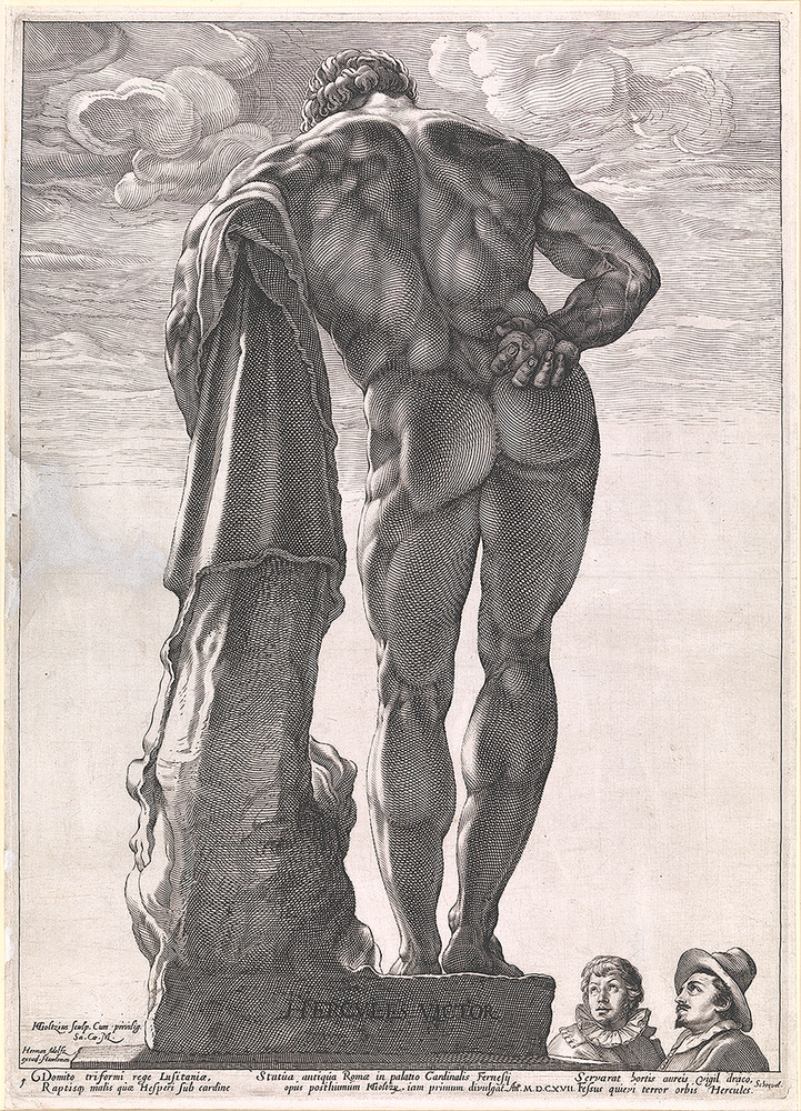 - opschrift l.o. in de plaat: H Goltzius (HG in monogram) sculp. Cum privilig. Sa. Cae. M.