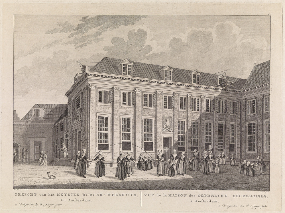 - Gezicht van het Meysjes Burgerweeshuys, tot Amsterdam (naar H. Schouten), 1783