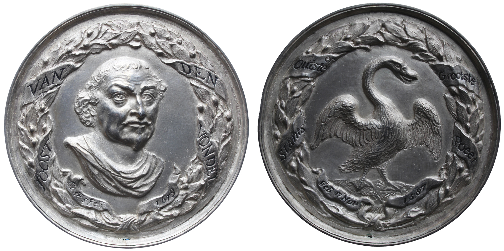 opschrift voorzijde op het lint: JOOST / VAN / DEN / VONDEL / Gest 5 Feb / 1679
