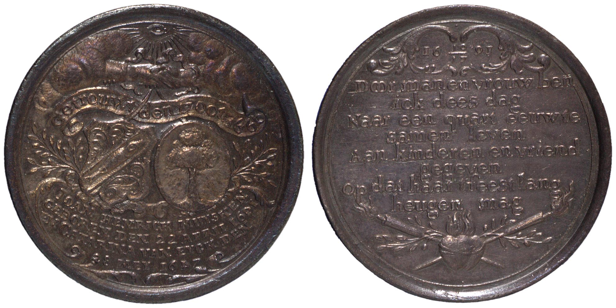 opschrift voorzijde: GETROUWT den 17 oct 1666