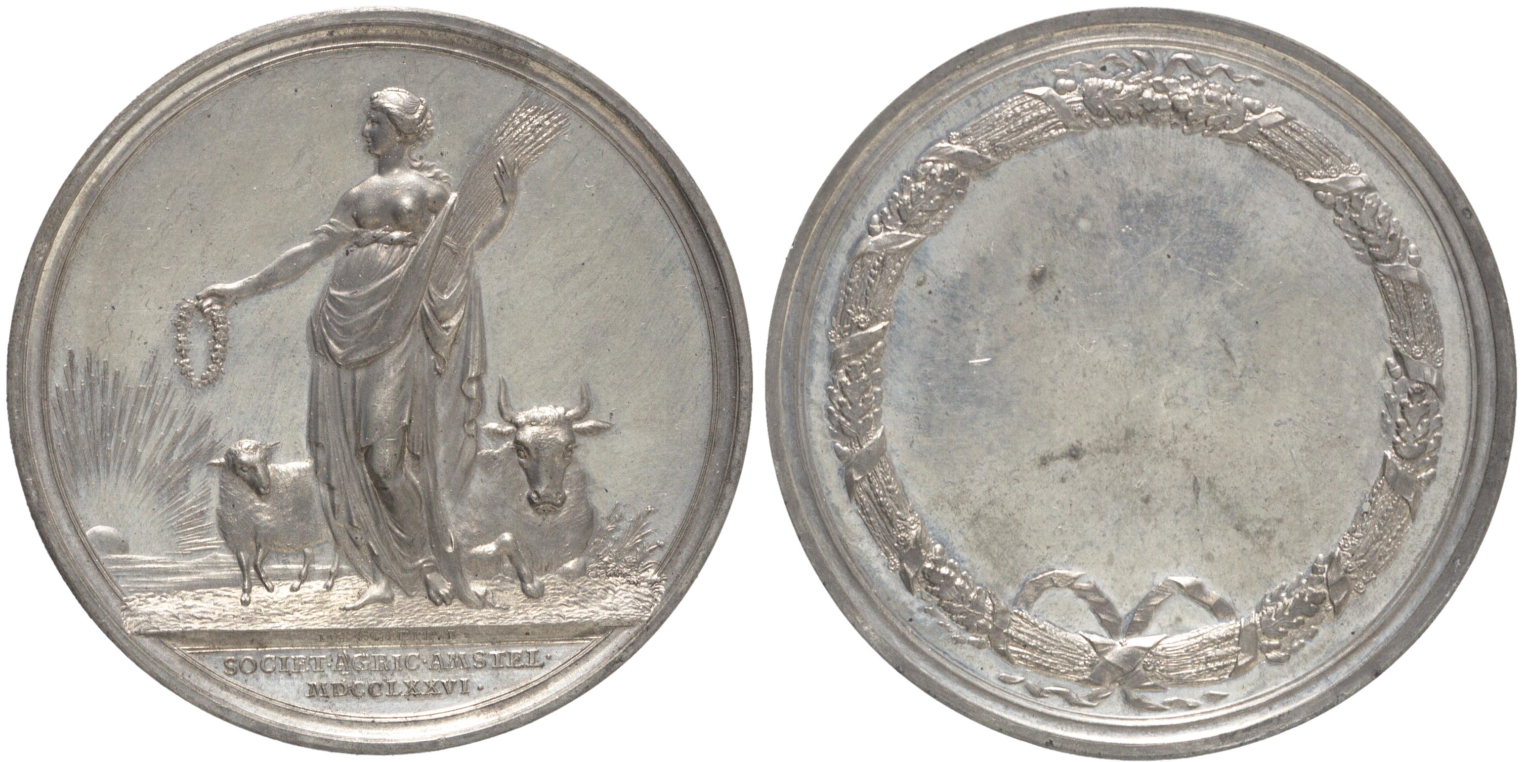 signatuur, datering voorzijde in de afsnede: SOCIET.AGRIC.AMSTEL. / MDCCLXXVI.