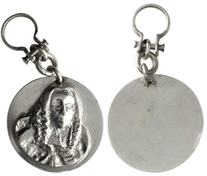 voorzijde: gedreven borstbeeld van H.D. Hooft, iets naar rechts gewend. Bovenin een gat waardoorheen een ring. keerzijde: onbewerkt.- Trefwoorden