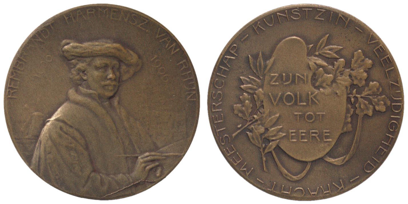 omschrift voorzijde: REMBRANDT HARMENSZ. VAN RHIJN / 1606 - 1906