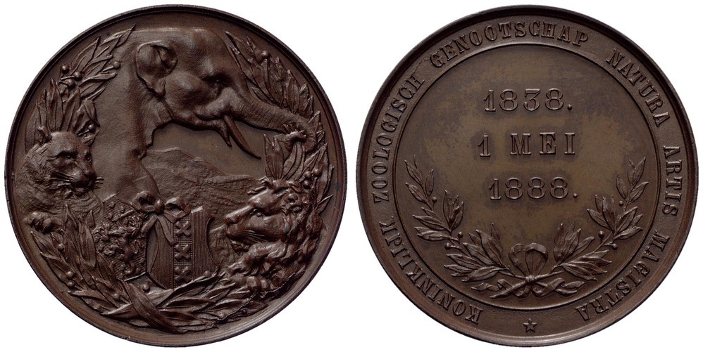 omschrift keerzijde: KONINKLIJK ZOOLOGISCH GENOOTSCHAP NATURA ARTIS MAGISTRA.