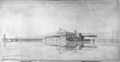Ontwerp Amstelbrug (Berlagebrug) Amsterdam-Zuid en arcaden aan Amsteldijk met Amstelpaviljoen (naar H.P. Berlage)