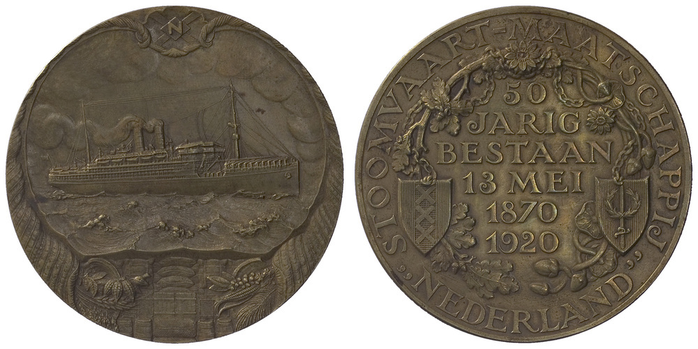 omschrift keerzijde: STOOMVAART-MAATSCHAPPIJ "NEDERLAND"
