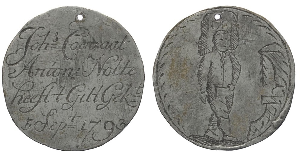 opschrift voorzijde: Johs Coenraat / Antoni Nolte / heeft 't Gilt Gekt / 5 Sept 1793