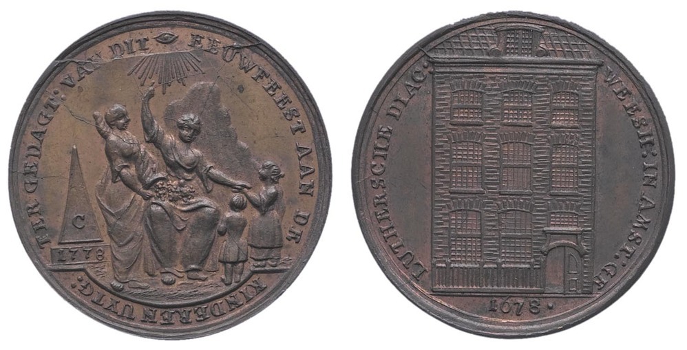omschrift voorzijde: LUTHERSCHE DIAC: WEESH: IN AMST: GES. 1678.