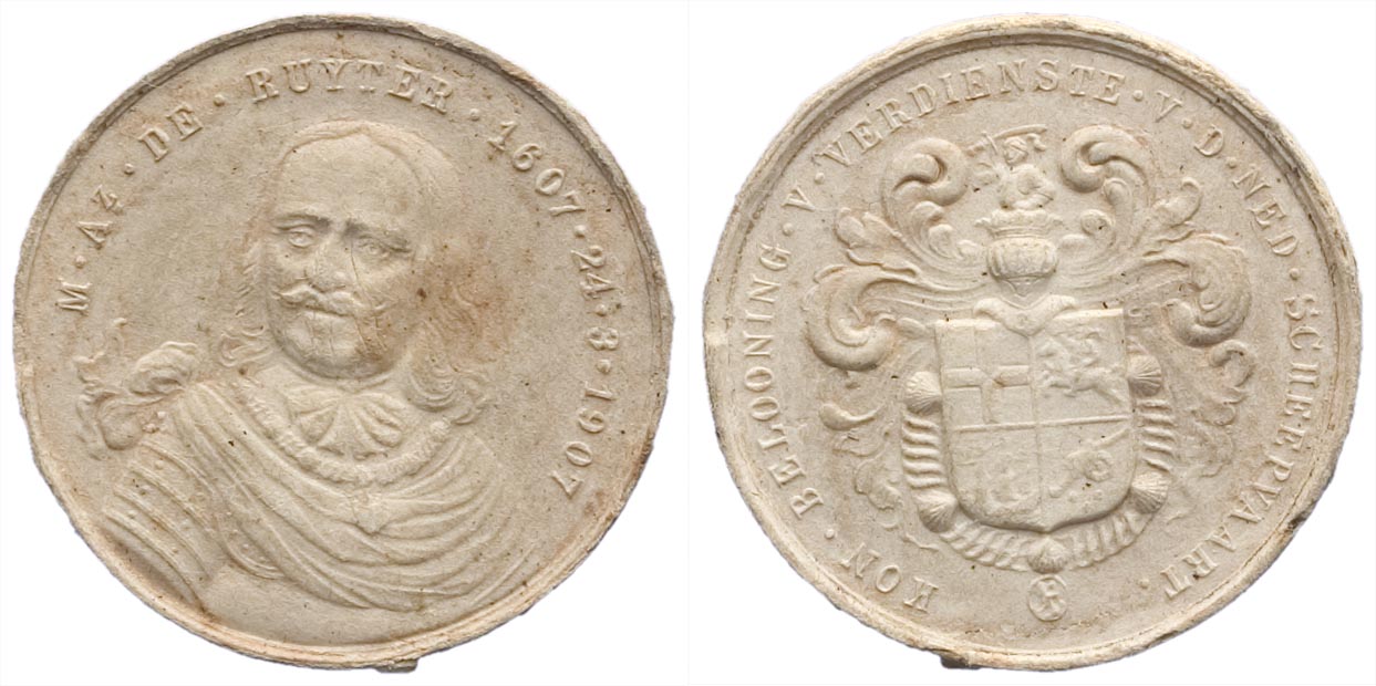 keerzijde: in een omschrift het familiewapen van De Ruyter.