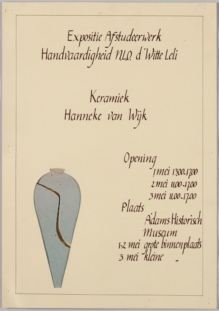 - Affiche voor tentoonstelling afstudeerwerk handvaardigheid N.L.O. d'Witte Leli (2 delen)