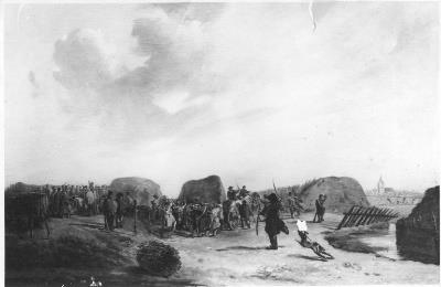- De Schutterij uit Amsterdam en Weesp, de lunet "De Halve Maan" aan de Karnemelksloot bij Naarden verdedigd tegen de Fransen, 1814