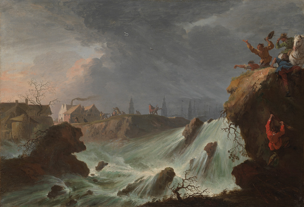 In de nacht van 4 op 5 maart 1651 woedde er een noordwesterstorm over Amsterdam, terwijl het bovendien springvloed was. De resulterende hoge waterstand, die de naam Sint Pietersvloed heeft gekregen, had rampzalige gevolgen. Ten oosten van Amsterdam brak de Sint Anthonis- of Diemerdijk op twee plaatsen door, een spectaculaire gebeurtenis die door meerdere kunstenaars is vastgelegd. Willem Schellinks maakte een aantal tekeningen en etsen, maar ook dit schilderij. De hier afgebeelde dijkdoorbraak is bij het plaatsje Houtewael, een dorpje dat destijds net ten oosten van Amsterdam lag, ongeveer waar tegenwoordig de kruising van de Sarphatistraat met de Hoogte Kadijk is. De nabijheid van Amsterdam is door Schellinks gesuggereerd door de drie kerktorens en zelfs scheepsmasten af te beelden, overigens veel dichterbij dan in werkelijkheid.