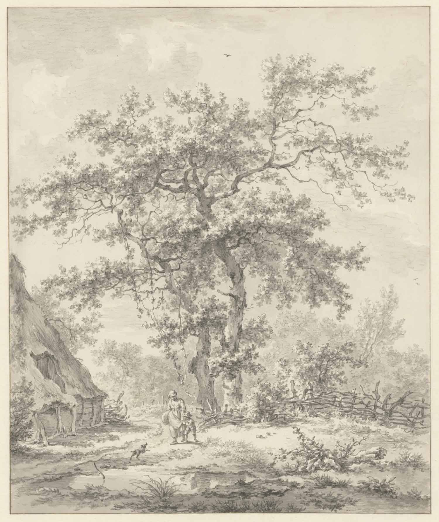 Het verticale formaat van deze tekening en van Een boerderij onder een hoge boom (cat. nr. 57) is ongewoon in zijn getekende oeuvre. ( Ingrid Oud)