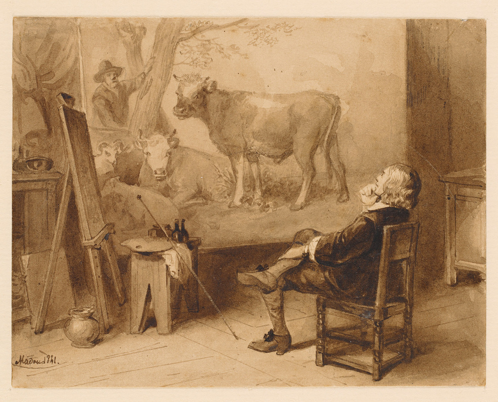 - Paulus Potter zittend voor zijn schilderij De stier, 1841