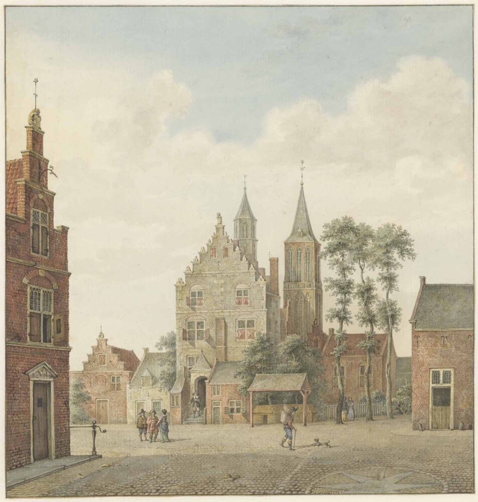 - Een stadsgezicht, naar Jan van der Heyden, 1767 - 1822