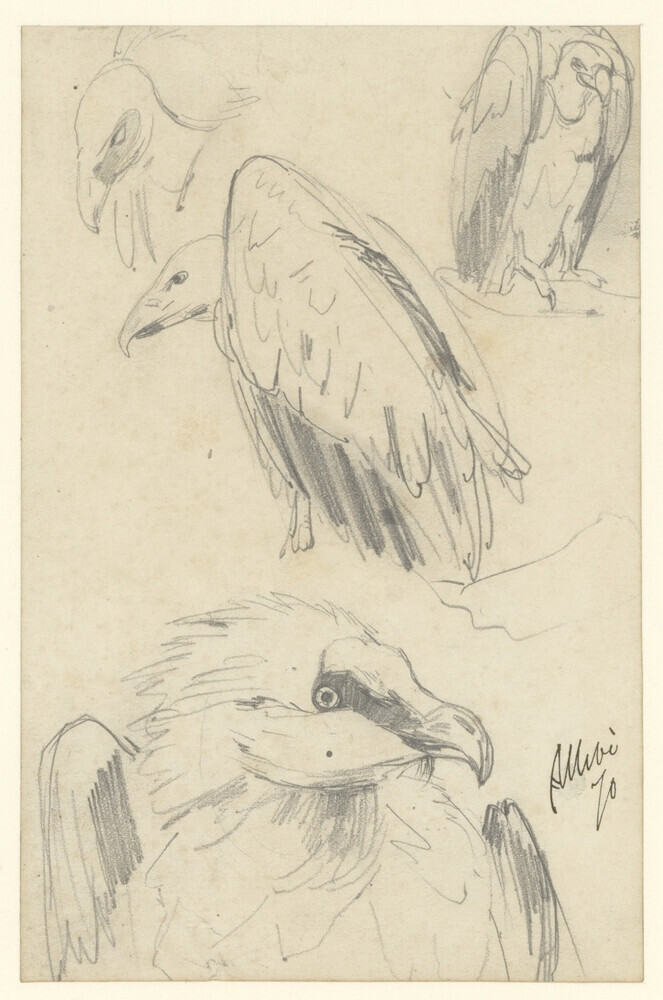 - Studie van gieren (in het midden een vale gier en mid.o. een lammergier), 1870