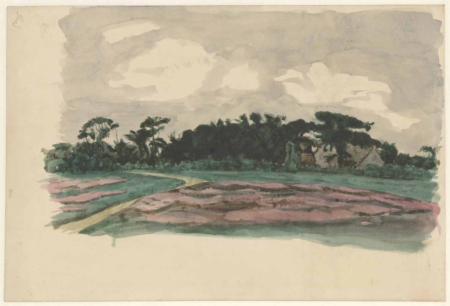- Heidelandschap met boschrand. Landschap met hooischelven (verso), 1844 - 1903
