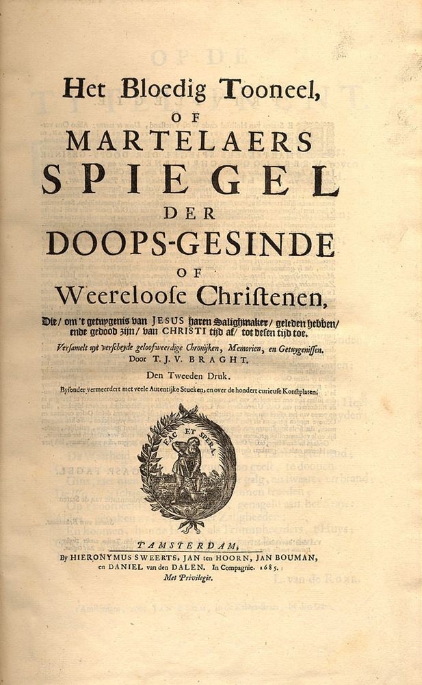 - Bloedig Tooneel, Of Martelaers Spiegel Der Doops-gesinde Of Weereloose Christenen, 1685