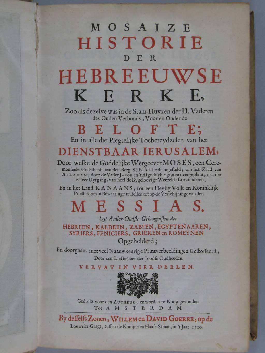 - Mosaize historie der Hebreeuwse kerke, 1, 1700