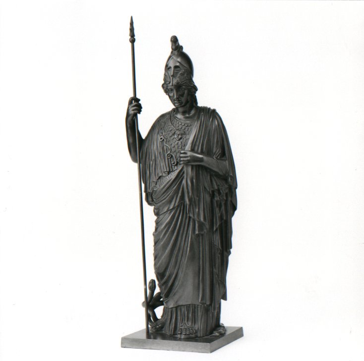 Kopie naar de marmeren Minerva Guistiniani (een Romeinse navolging van een Grieks bronzen origineel uit de 4de eeuw v.Chr.; verblijfplaats Vaticaanse Musea te Rome). Naar dit beeld werden in de 19de eeuw bronzen kopieën gemaakt.
